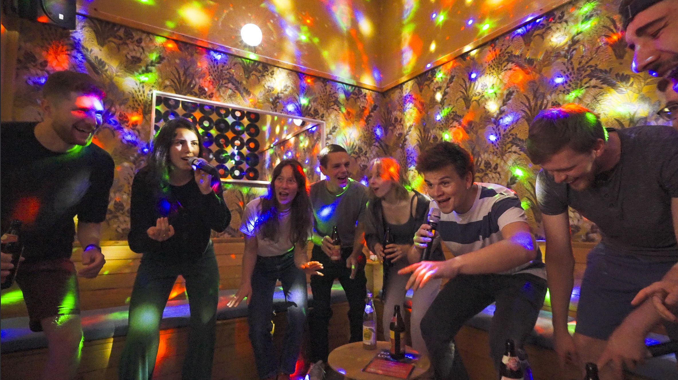Ein Karaoke-Termin dauert 1 oder 2 Stunden, inkl. 5 Minuten Einrichtungszeit, bis eure Gruppe Platz genommen hat und loslegen kann.